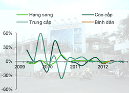 Dự án Golden Square được khởi công đầu năm 2008, nhưng giờ lại“đắp chiếu” dù chủ đầu tư cam kết sẽ hoàn thành vào năm 2011 (Đồ thị: Giá chào bán % thay đổi theo quý - BĐS Đà Nẵng - nguồn CBRE)